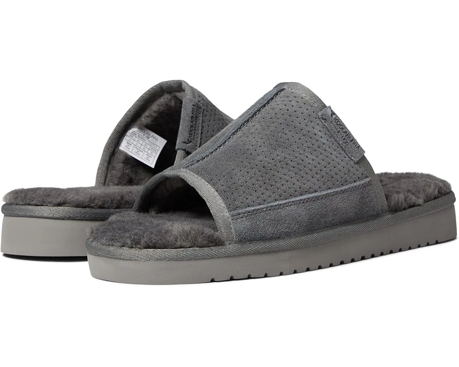 Lounge around on your weekend morning with a cozy and snug feel by slipping into the Koolaburra by UGG® Dawsen slippers. SKU: #9617328Flat sandals featuring embossed suede upper. Faux fur lining for cozy comfort. Faux fur covered topsole. Open round toe silhouette. Easy slip-on style. Durable EVA outsole. Imported. Measurements: