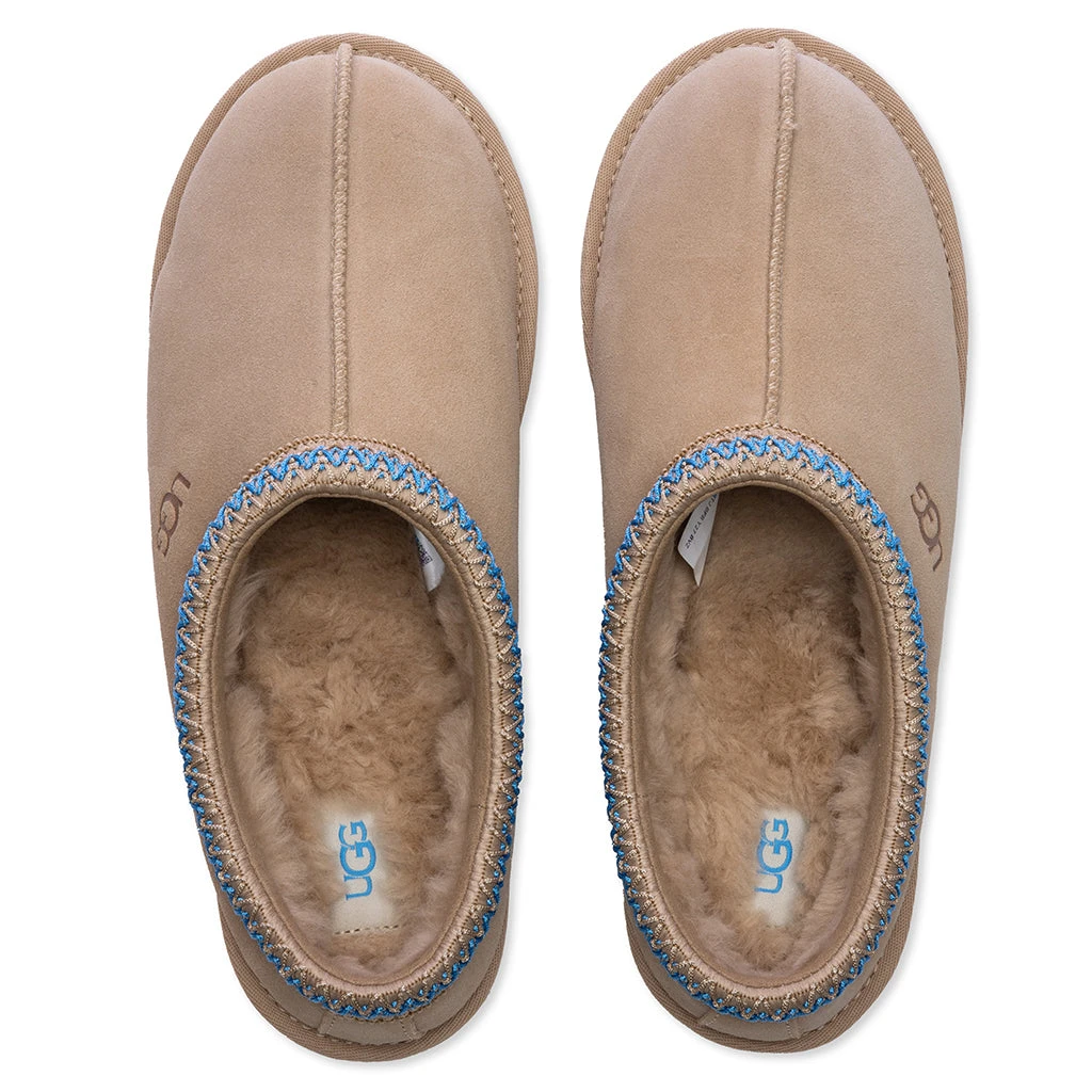 The Men’s Tasman Slipper in Dusted Cocoa combines cozy comfort with a refined design. Crafted with a suede upper and detailed with signature UGG Tasman braid embroidery, it exudes timeless style. A plush sheepskin lining and UGGplush sockliner offer unmatched warmth and comfort, while the foam footbed and UGG Treadlite outsole provide cushioning and durable traction for indoor and outdoor wear.