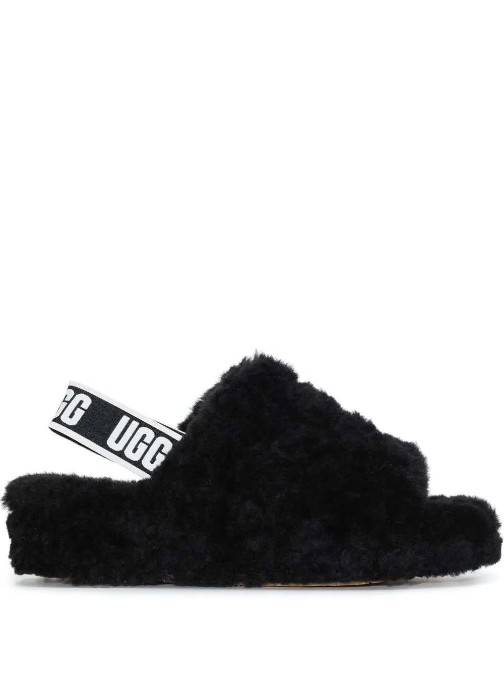 Soft black shearling wraps the foot in this pair of Fluff Yeah slides from UGG. Constructed with a slingback strap, these shoes keep the wearer’s feet covered in comfort.