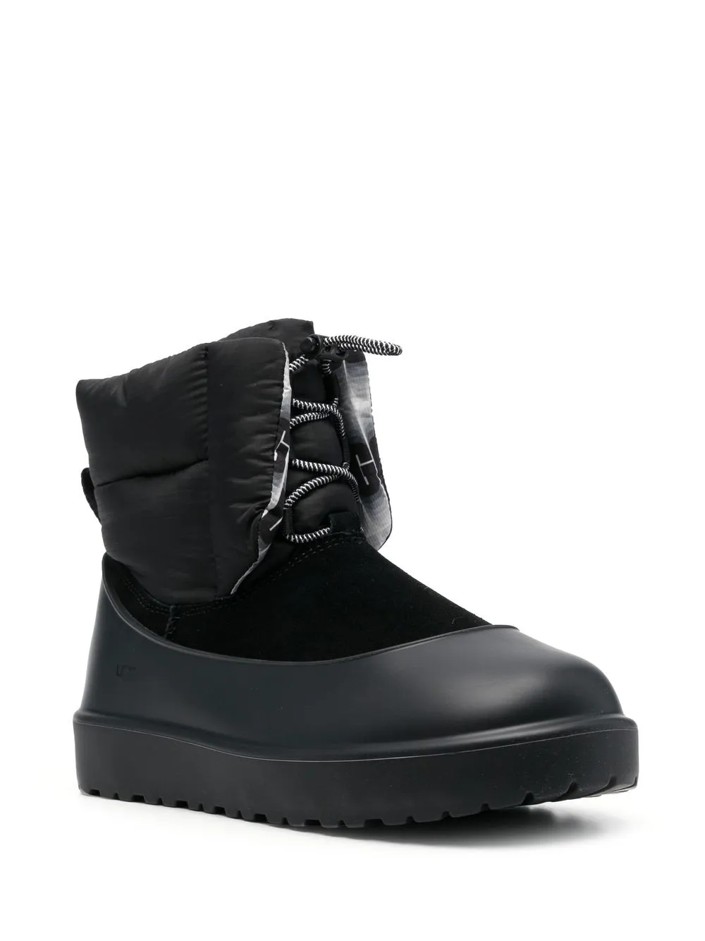 Maxi Toggle ankle boots from UGG featuring toggle fastening, pull-tab at the heel, ankle-length, round toe, flat rubber sole, black and calf suede.