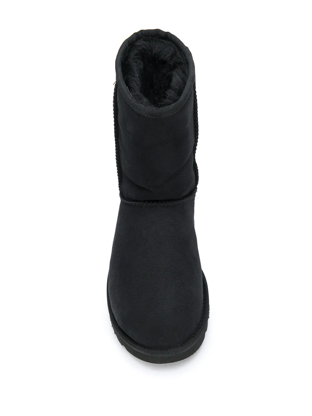 Black leather slip-on boots from UGG featuring a round toe, a slip-on style and a ridged rubber sole.