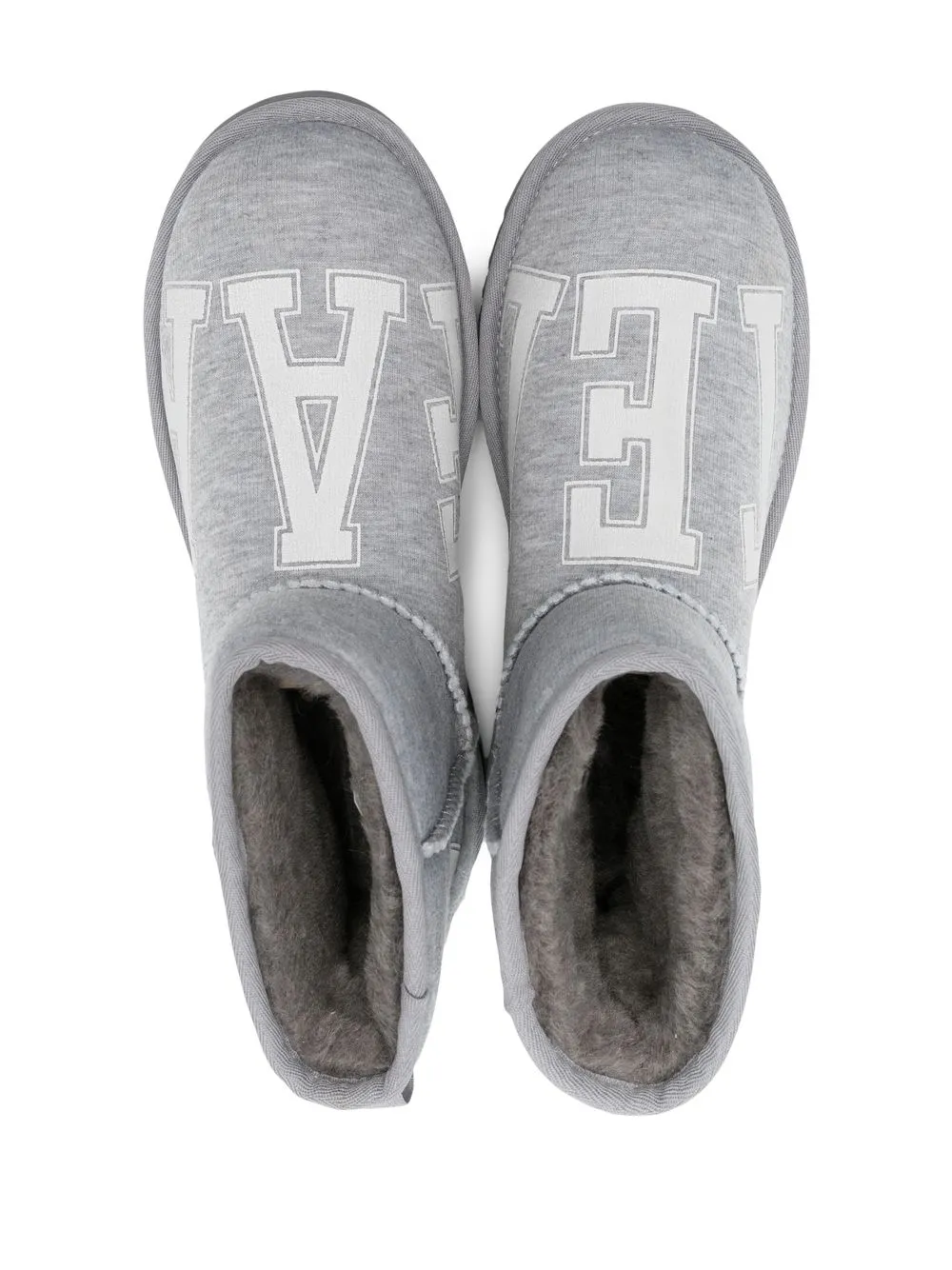 x Teflar ankle length boots from UGG featuring light grey, recycled wool blend, logo print to the front, ankle-length, faux-shearling lining, round toe, ridged rubber sole and pull-on style. Conscious: This item is made from at least 50% recycled or upcycled materials. For recycled synthetic clothing products we highly recommend using a microfibre-catching washing bag to ensure that no microplastics that can pollute water are released in the process..